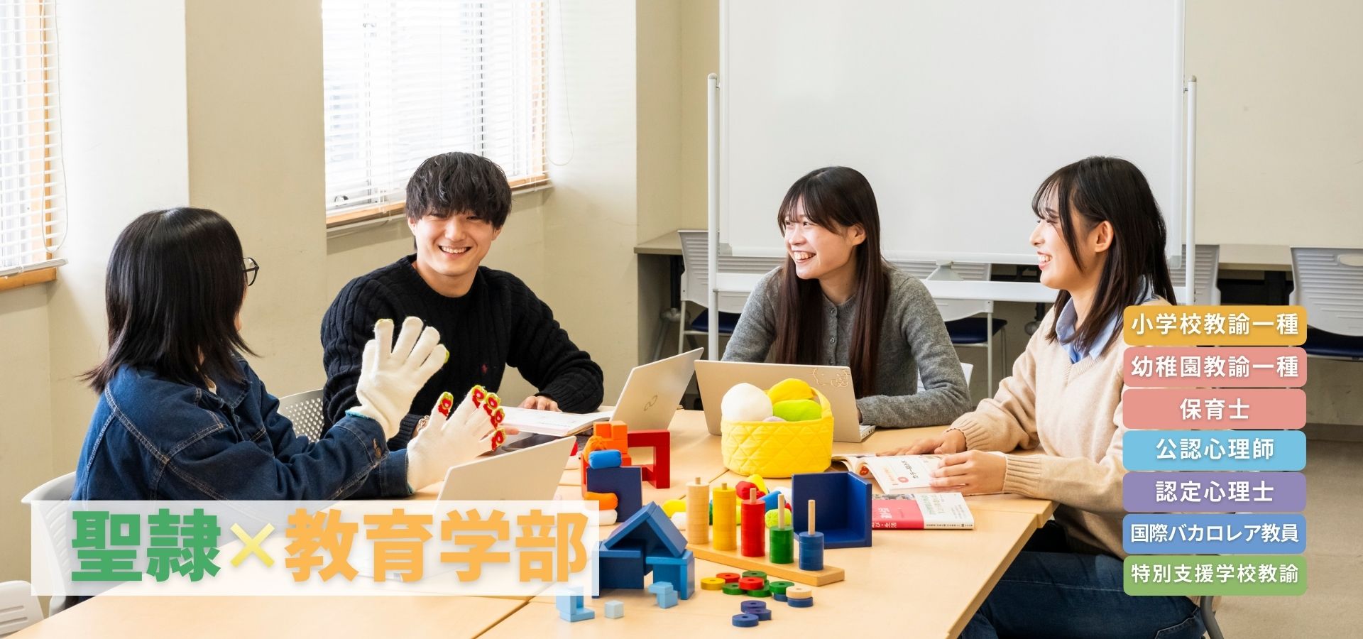 本学には、将来「人を支えたい」「人に寄り添う専門職者になりたい」 という思いをかなえる学びがあります。その思いを実現できる学びの場と、 めざすことのできる専門職をご紹介します。