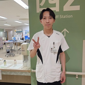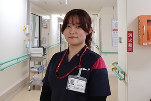 祖父が病気がちであったため、病院に見舞いに行くことが多く、看護師に憧れて看護師を目指しました。当院を希望した理由は、大学の基礎実習の時に患者と看護師が共にリハビリテーションを頑張る姿に惹かれたからです。また、急性期実習で看護師が患者と関わる時間が少ないと感じ、自分のやりたい看護が見い出せず、当院にインターンシップに参加し、ここでならやりたい看護ができると思い希望しました。
