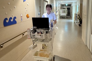 現在私が勤務しているのは、内科系乳児病棟で主に0~3歳くらいの子どもとそのご家族を対象にしています。忙しさの中でも子どもやご家族への言葉かけを大切に、丁寧な関わりを心がけています。安全に治療が受けられるよう支援すると共に、子どもの成長発達を大切にする看護は難しいですが、子どもたちの笑顔や成長、元気になり退院していく姿を見ると嬉しく思います。