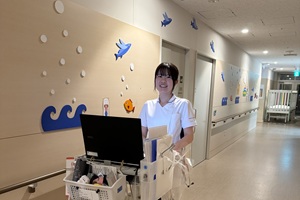 小児科病棟の看護師3年目として勤務しています。感染症や手術目的、半年以上の長期にわたる疾患など様々な子ども達が入院してきます。夏休みや冬休みは特に忙しい毎日ですが、子ども達と楽しいおしゃべりをしたり、元気になって帰っていく子ども達の笑顔に癒やされたりしながら仕事ができることが魅力です。