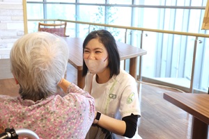 以前は急性期で働いていましたが、ゆっくり患者様とお話をする機会を作るのが大変でした。あっという間に退院し、急変するという状況に正直疲れたなと感じていました。そんな中で、違うナーシングケアホームのような施設でアルバイトをした中で、ゆっくり利用者様と関り、家族のような立場で看取りをする機会があり、自分のしたかった看護はこれだなと感じ慢性期領域での看護の道に進もうと考えました。