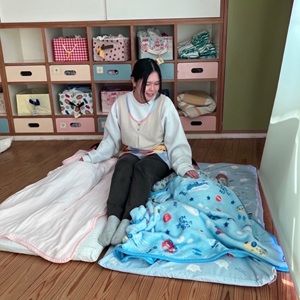 今年で就職7年目、幼児クラスの担任になり3年目となりました。私の園では異年齢クラスで保育を行 っていて、3、4、5歳の子が一緒の部屋で過ごしています。異年齢の子たちが関わる中でお互いに刺激を受けることも多く、あそびの中で人との関わり方やものの使い方、自分の気持ちを相手に伝えることを知っていきます。それぞれの年齢に合った関わり、そして一人ひとりの子を尊重して関わっていく中で、子どもたちが自分の力を信じて、卒園後も安心して過ごしていけるよう、今だからこそできる様々な経験や感情を子どもたちの中にたくさん育てていきたいです。