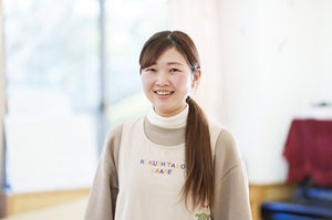 学生時代に実習で経験したことや、授業で学んだ知識、手作り玩具などが今の自分にとって大きな力となっています。また、インターンシップやボランティアに行くことで色々な園の様子を知り、就職先を決めるきっかけにもなりました。自分のペースで自分に合った進め方をしていくことが大切だと思います。今、たくさん学べる時間を仲間と共に楽しんでくださいね。