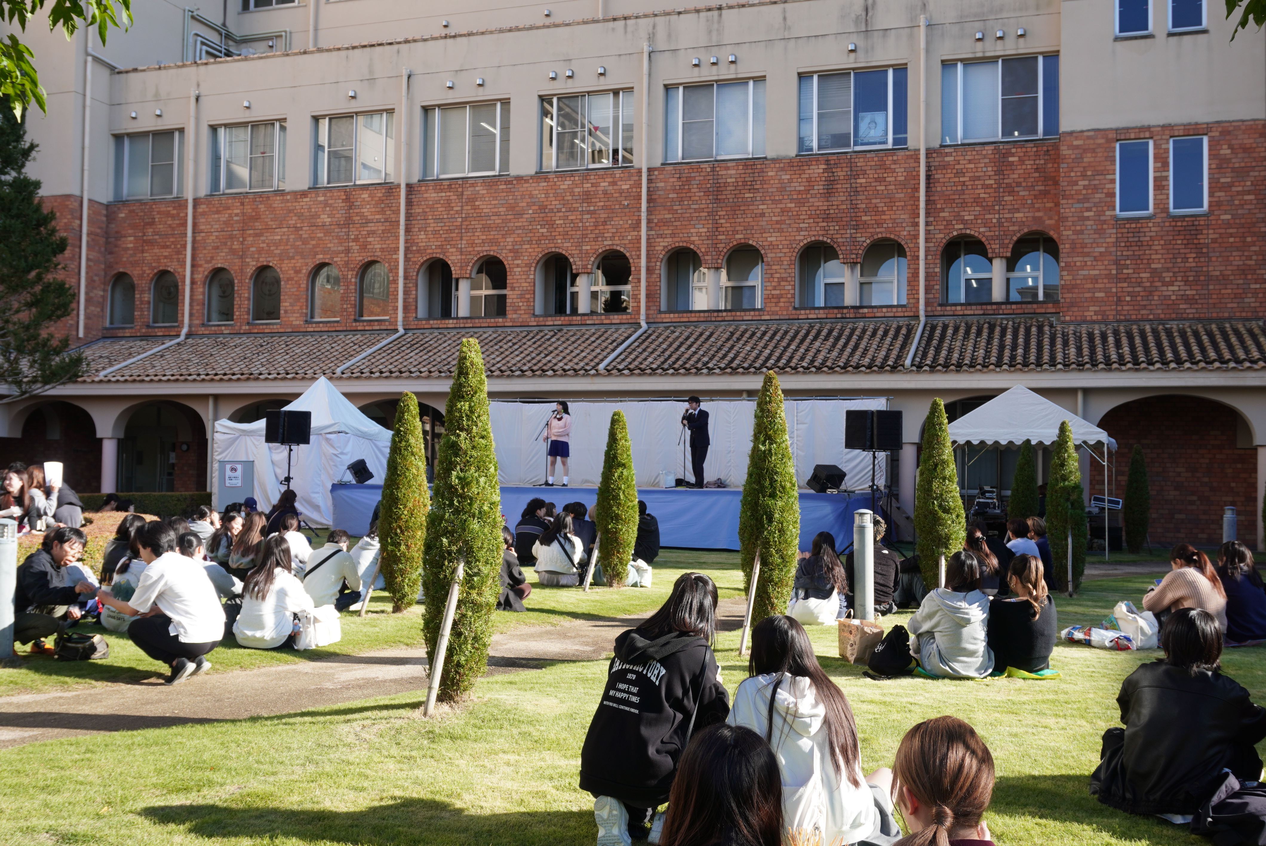 野外特設ステージではダンスの披露や軽音サークルによる演奏、よさこいの演舞などを行いました。「ウエストランド」と「まんじゅう大帝国」によるお笑いライブショーも開催し、聖灯祭が盛り上がりました。