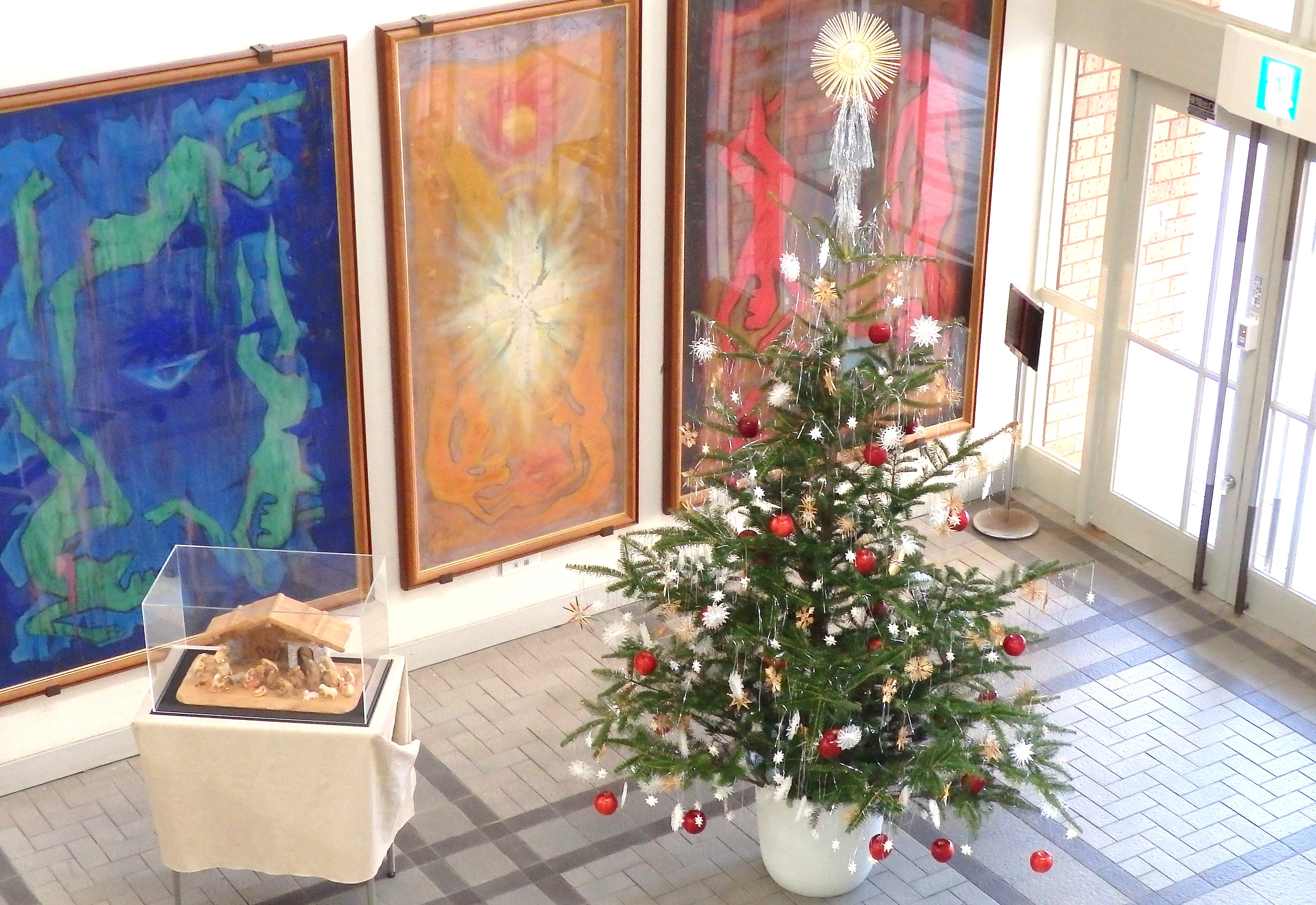 本校のツリーはドイツ式です。1953年にドイツから来日したディアコニッセのハニ姉妹によって伝えられ、以来70年以上の伝統が続いています。