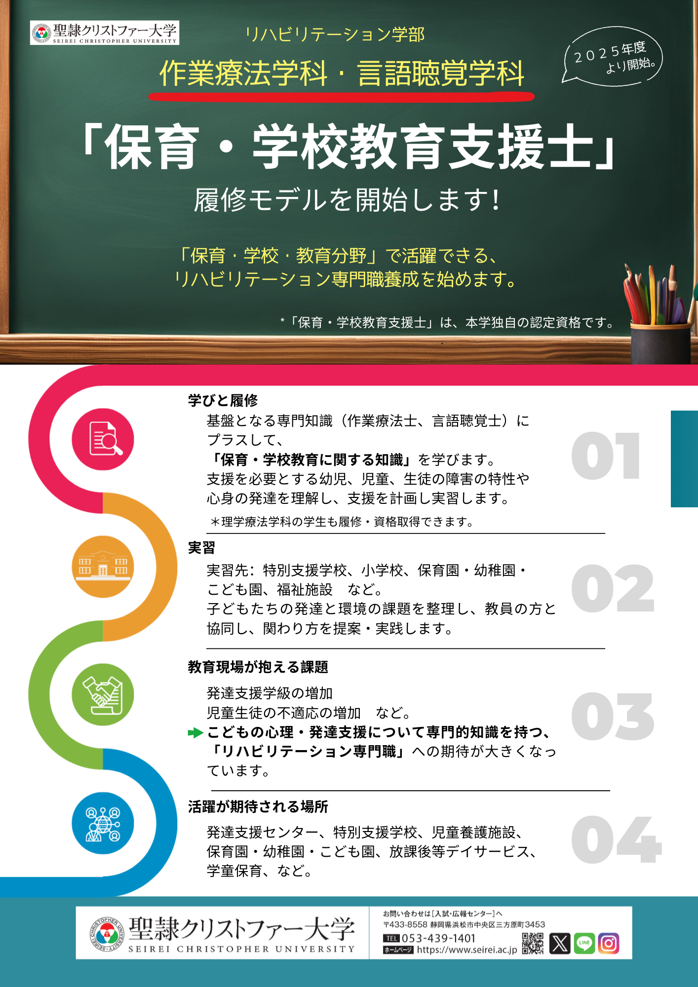 「保育・学校・教育分野」で活躍できる、リハビリテーション専門職を養成します。