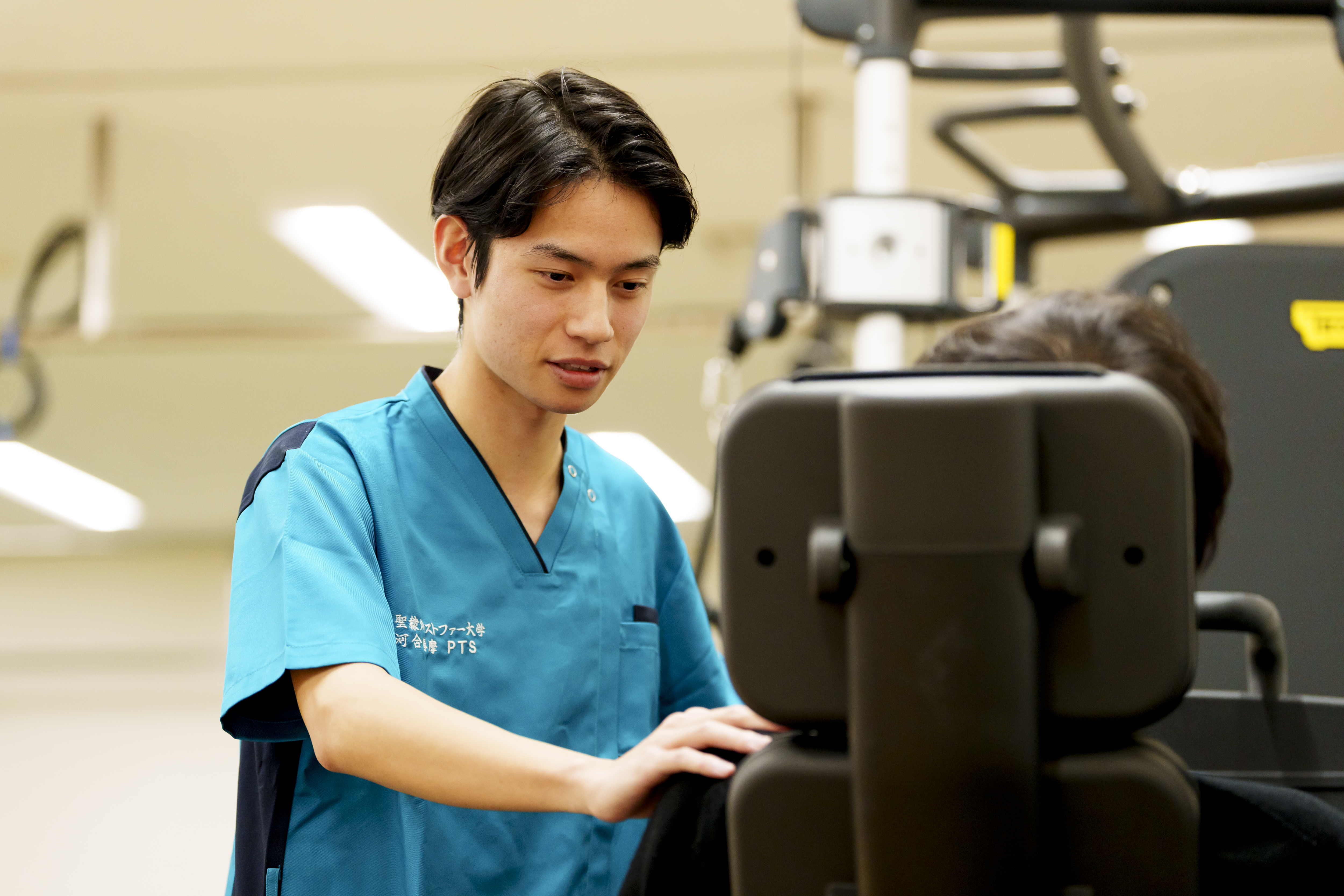 高校の部活で怪我をした際に理学療法士という職業を知り、興味を持ち始めたことがきっかけです。自分も「怪我をした人を助けたい」という思いから理学療法士をめざすようになりました。そして、医療において幅広い活動を行っている本学なら、理想とする理学療法士になれると考え、入学を決意しました。