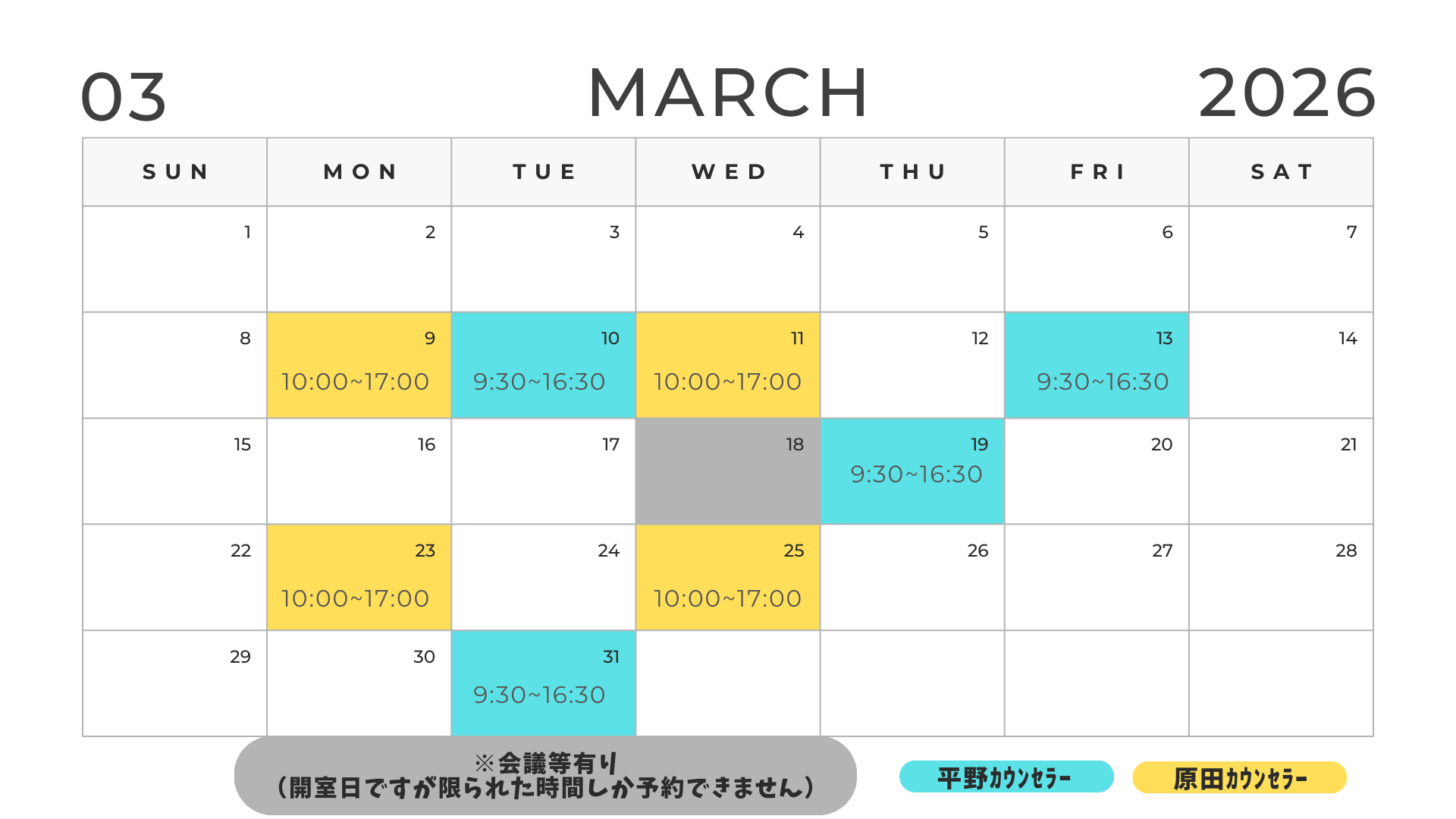 詳細は予約フォームの予約可能日時で確認してください。