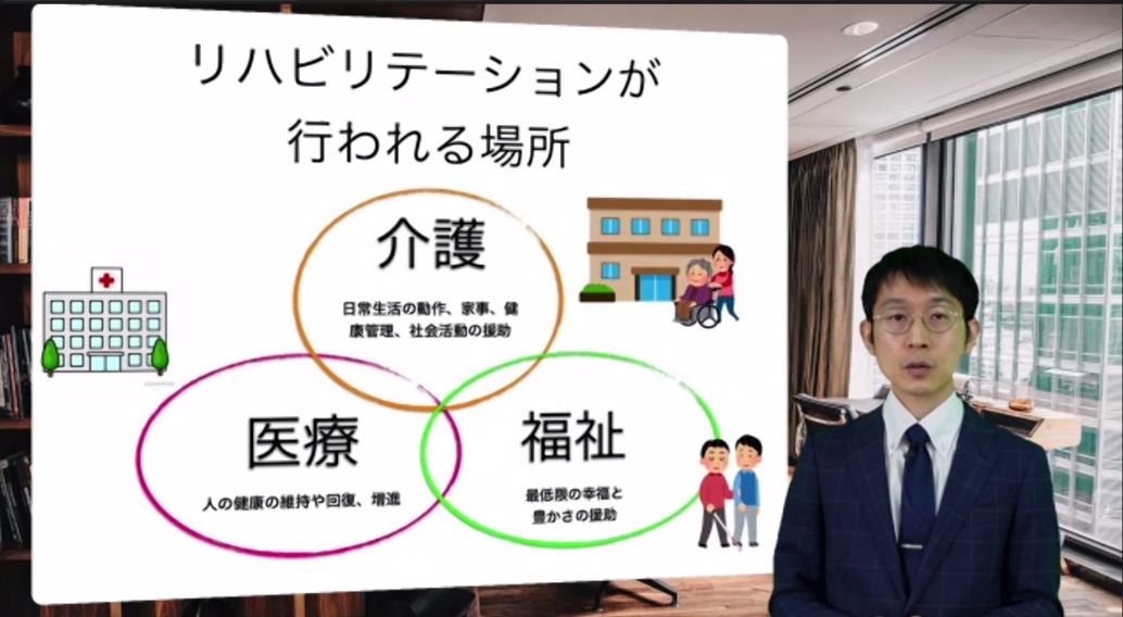 新型コロナウイルス感染症の感染拡大状況により、オンライン(Zoom)での開催となった今回の講演では、「作業療法士と理学療法士の仕事」をテーマに、医療の現場だけではなく介護や福祉の現場でも必要とされているリハビリテーション専門職の仕事について詳しくご紹介しました。