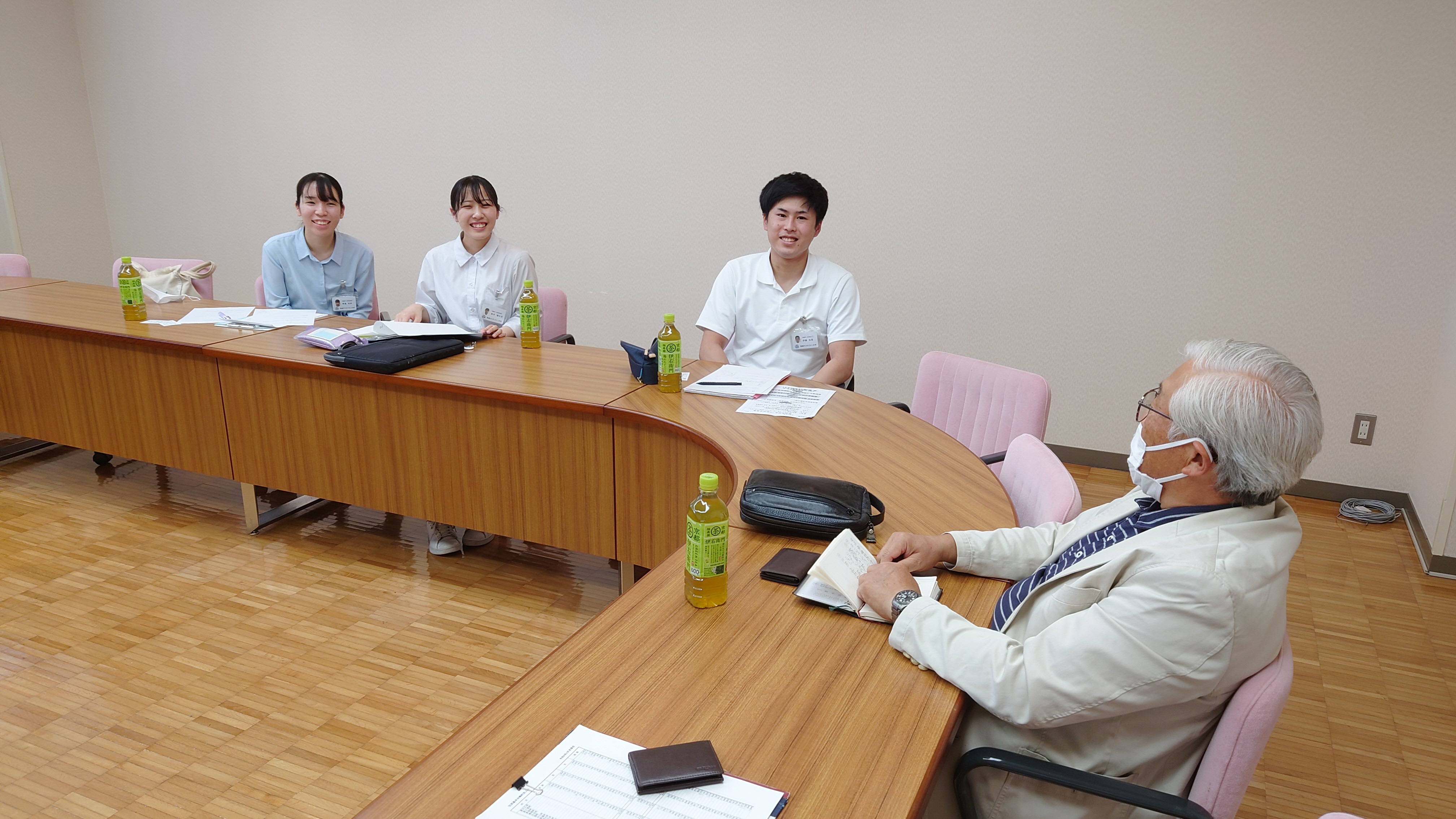 実習に参加した3名は、5月24日(水)、センター長さんや敷地サロン茶話会のリーダーさんから、地区の高齢者の生活の様子などについて学びを深めました。