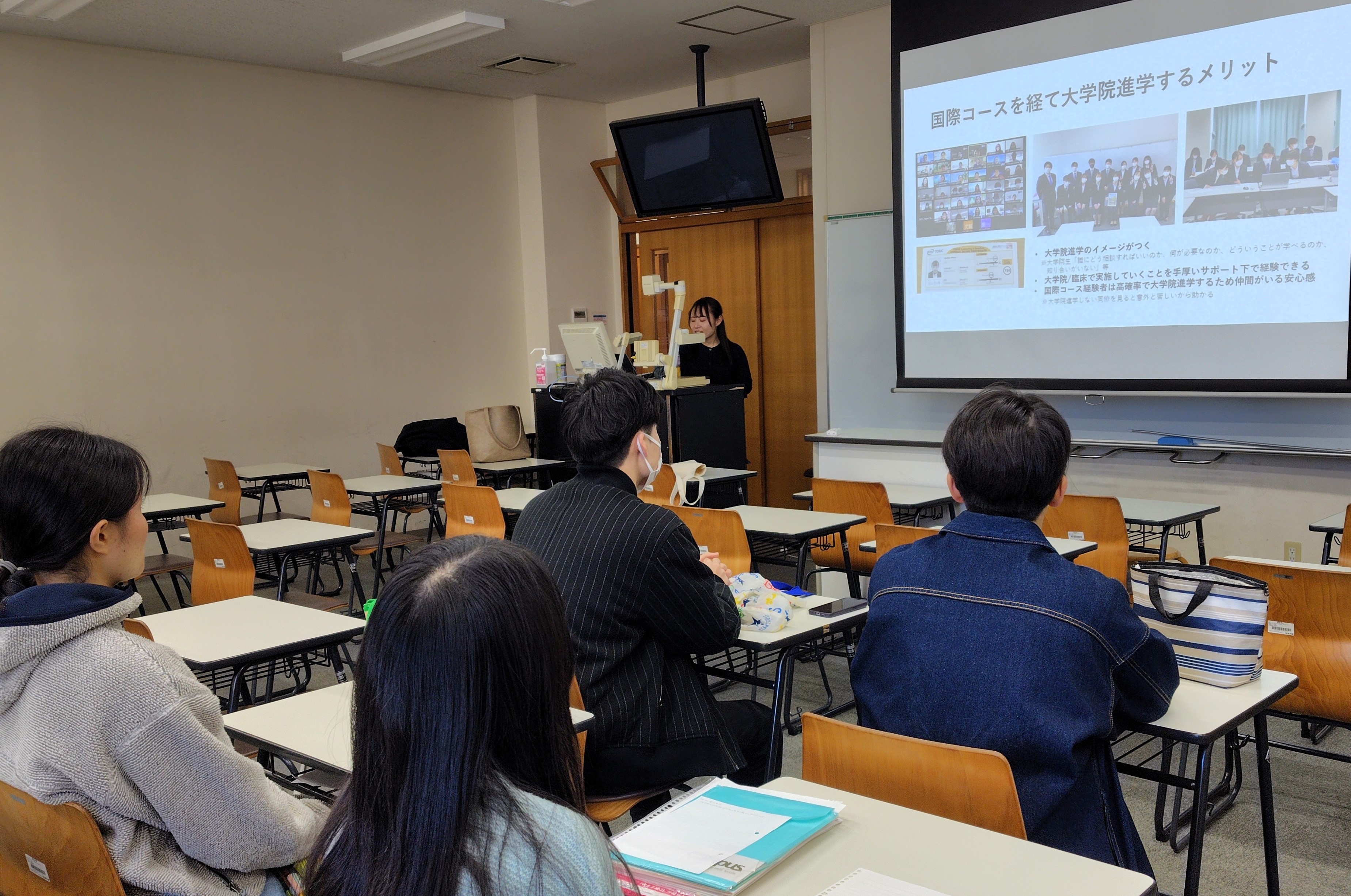 12月19日(木)、国際リハビリテーションコースおよび国際保健医療福祉プログラムの履修者を対象に、作業療法士として勤務しながら本学大学院前期課程で学ぶ前田李々香さんによる特別講義が行われました。