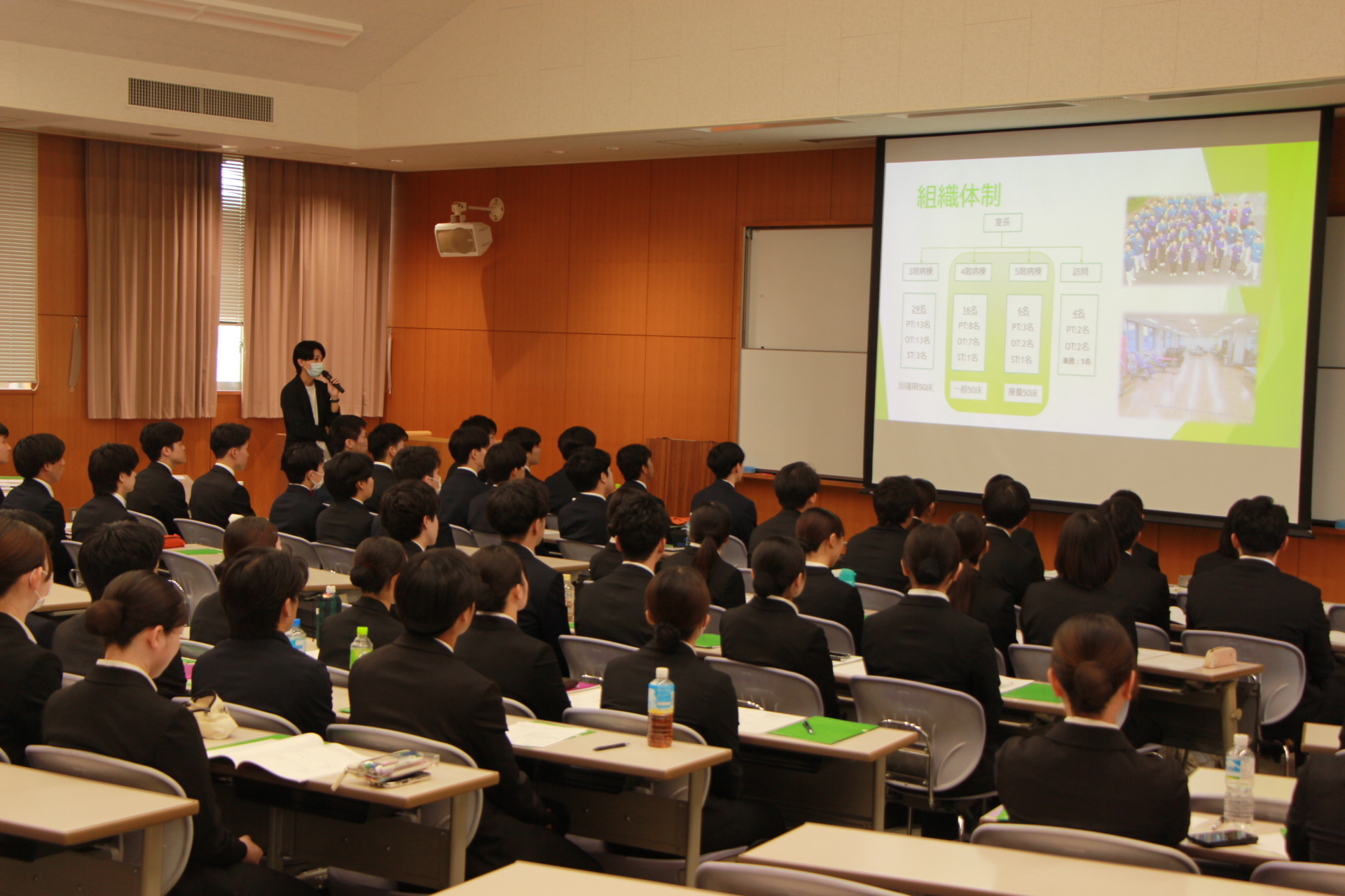 聖隷関係病院のリハビリテーション部の責任者から、各病院におけるリハビリについての説明がありました。また、聖隷福祉事業団本部の人事担当者から人事制度や採用情報についての説明を行っていただきました。