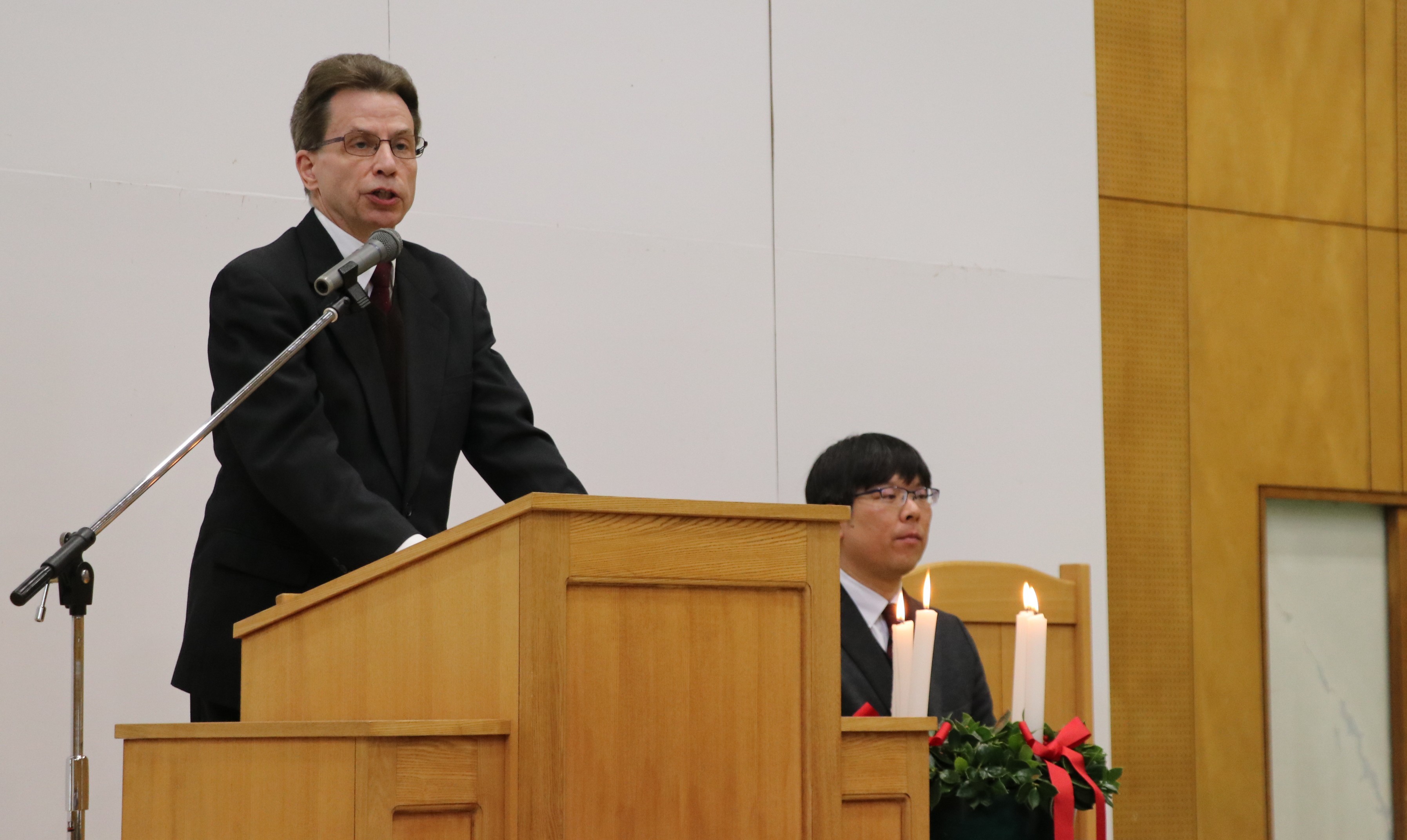 今年度は説教に東京神学大学のウェイン・ジャンセン教授をお招きしました。ジャンセン教授はかつて聖隷福祉事業団のチャプレンや遠州栄光教会の協力宣教師を務められるなど、本学とも縁の深い方です。