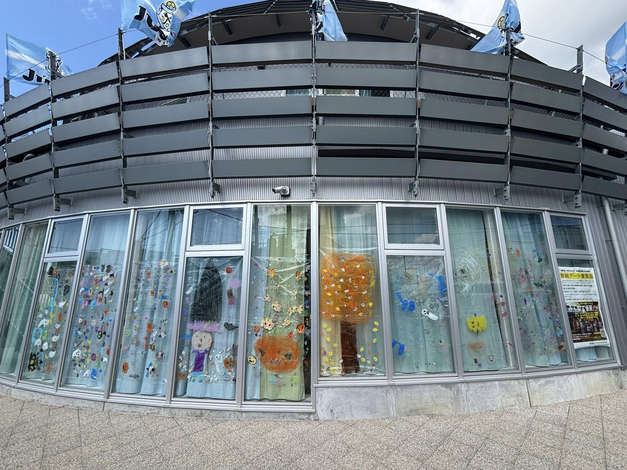 今回のテーマは「ハロウィン」。子供たちの夢や願い、そして描く楽しさが満ち溢れている絵の数々が、窓ガラスというキャンバスいっぱいに表現され、道行く人々の目を楽しませています。