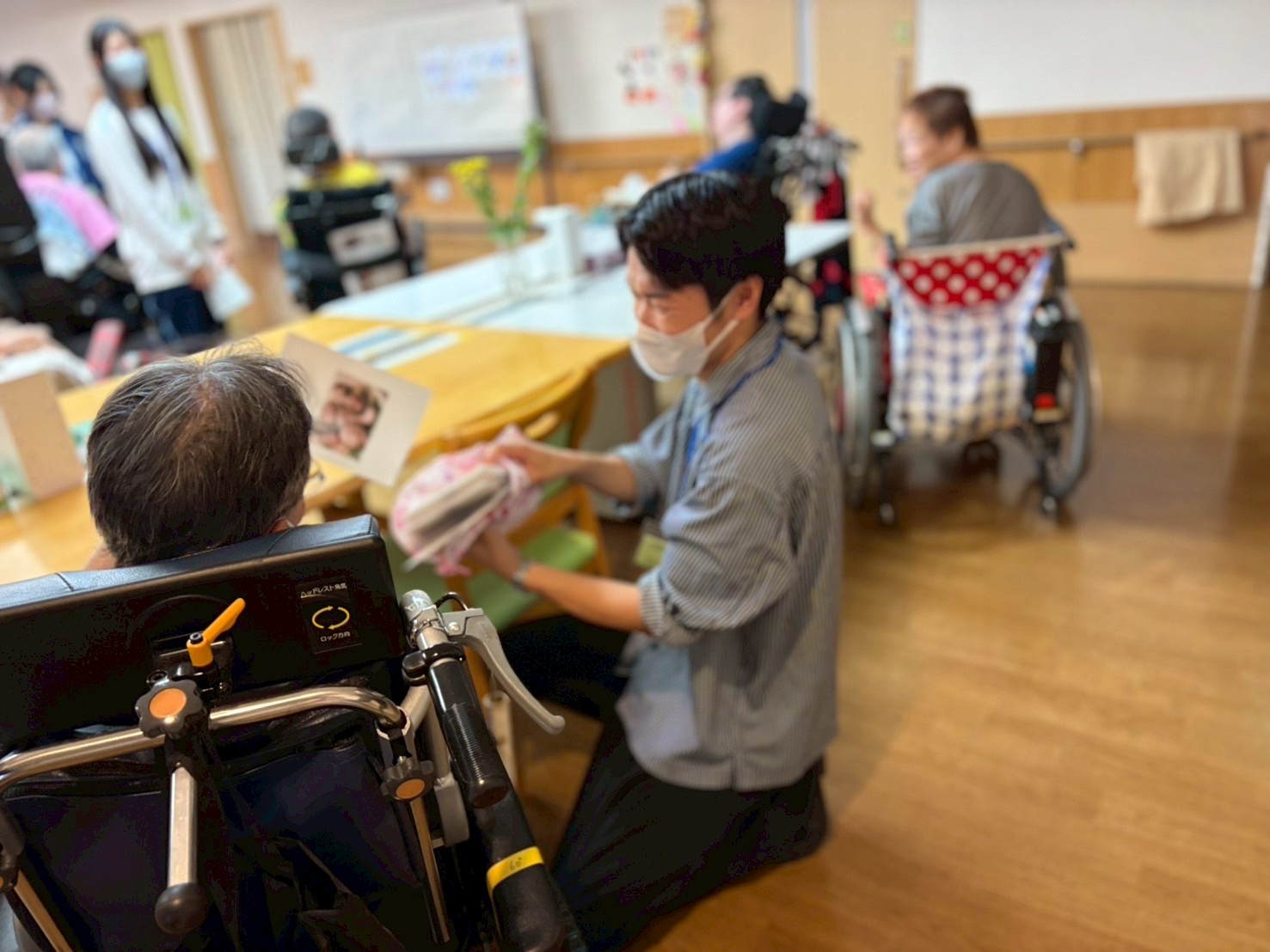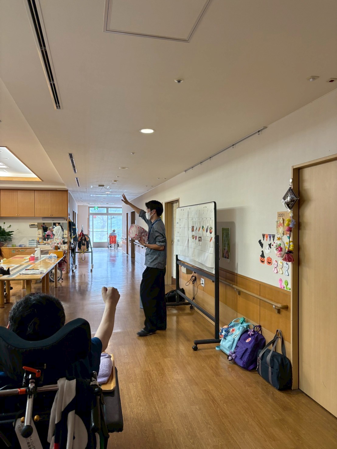 2025年10月5日、大学の近くにある身体障がい者施設にて、社会福祉学部社会福祉学科介護福祉コースの学生と教員が企画したレクリエーション活動を行いました。