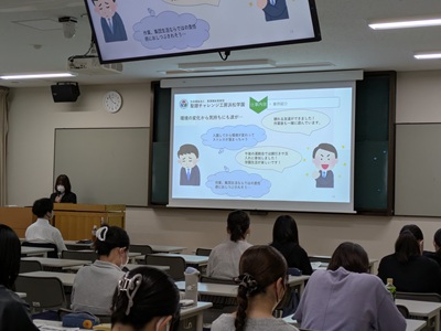 聖隷福祉事業団法人本部人事企画部採用課の担当者様にお越しいただき、事業内容や職種別の仕事内容および働き方などについて詳しくご説明いただきました。
