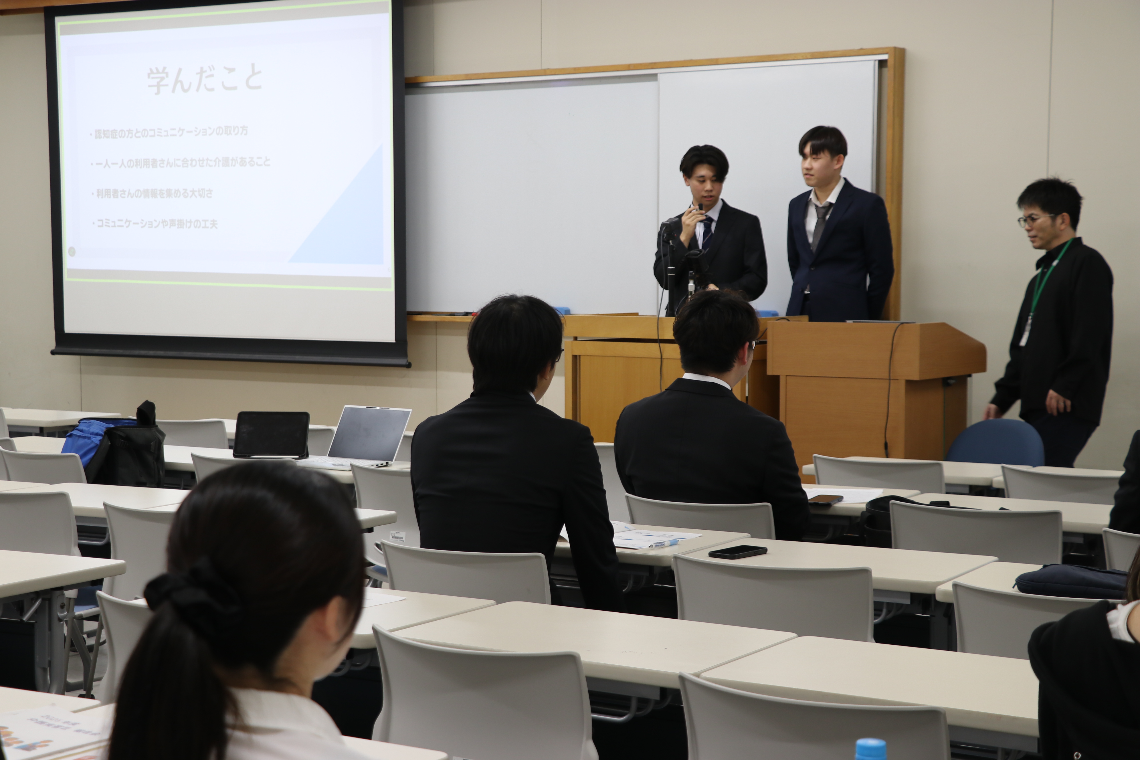1年生は「介護実習Ⅰ」で12日間、2年生は「介護実習Ⅱ」で23日間、8月・9月に施設にて実習を行いました。報告会では実習の中での取り組みや学んだこと、今後の課題について学生が発表しました。