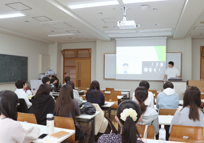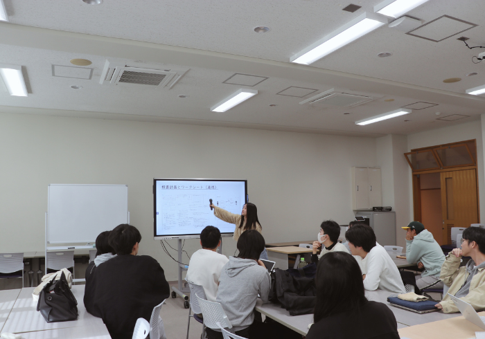 聴講した2年生からは「来年の実習に向けて、具体的なケースにおいてどのような準備を先輩はしていたか」「児童がうまくのってこない時の引き寄せ方や集中の保ち方」などの質問が寄せられ、4年生からも自身の経験を踏まえたするどい質問や助言が行われました。学年を超えて教員をめざす同志として活発な意見交換が行われる報告会は、実習の学びがさらに深められる場です。