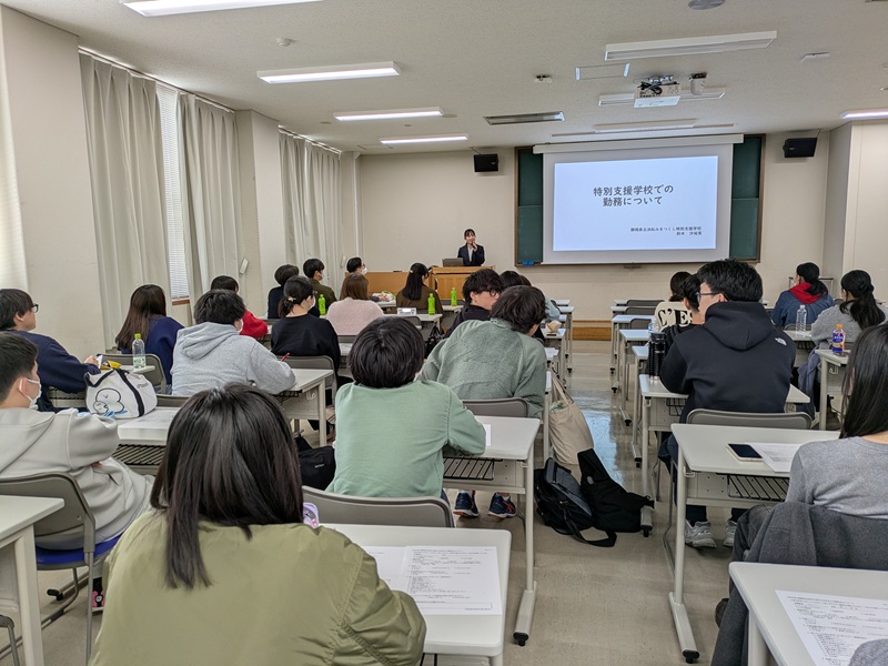 公立幼稚園や私立こども園で勤務する卒業生、小学校や特別支援学校で教員として勤務する卒業生を講師としてお招きしました。