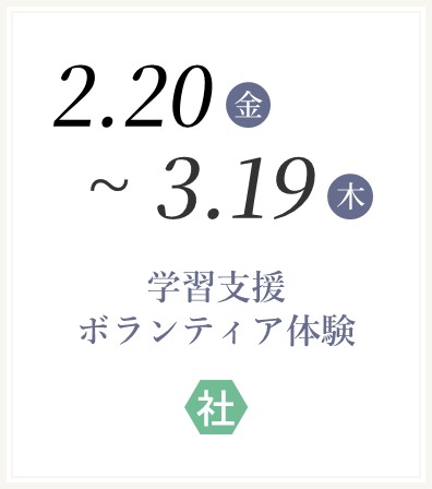 ボランティア・専門職体験 ページ内目次 2025年度 ボランティア・専門職体験 福祉施設の見学会 2025年度 ボランティア・専門職体験 終了したイベント 福祉施設の見学会 静岡 千葉・東京・神奈川 奈良・兵庫