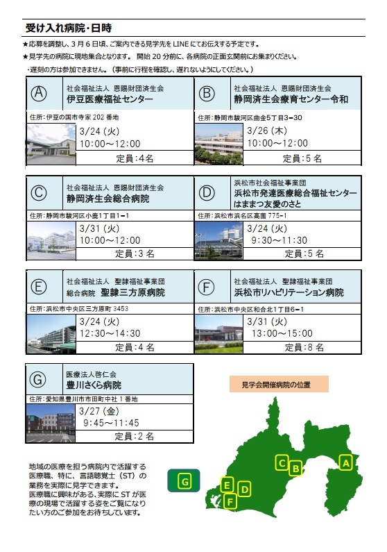 病院見学会(言語聴覚療法:静岡・愛知・山梨) 2026年3月開催